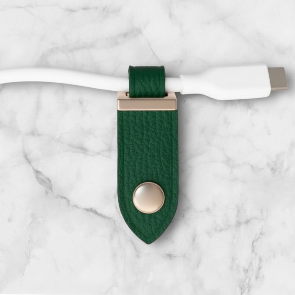 「コードをまとめるだけ」で終わらない、姫路レザー製コードバンドです。